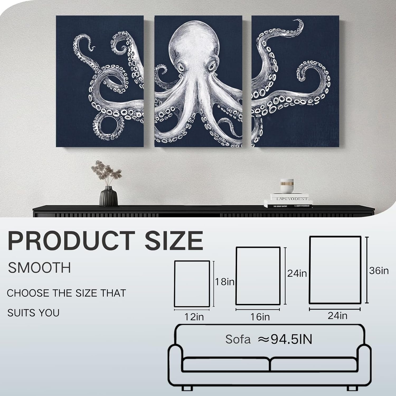 Octopus Wall Decor, Octopus Canvas Wall Art, Ocean Wall Decor,Sea Animal Canvas to Paint for Bathroom, Living Room, Bedroom (24" x 36" x 3 pcs)
