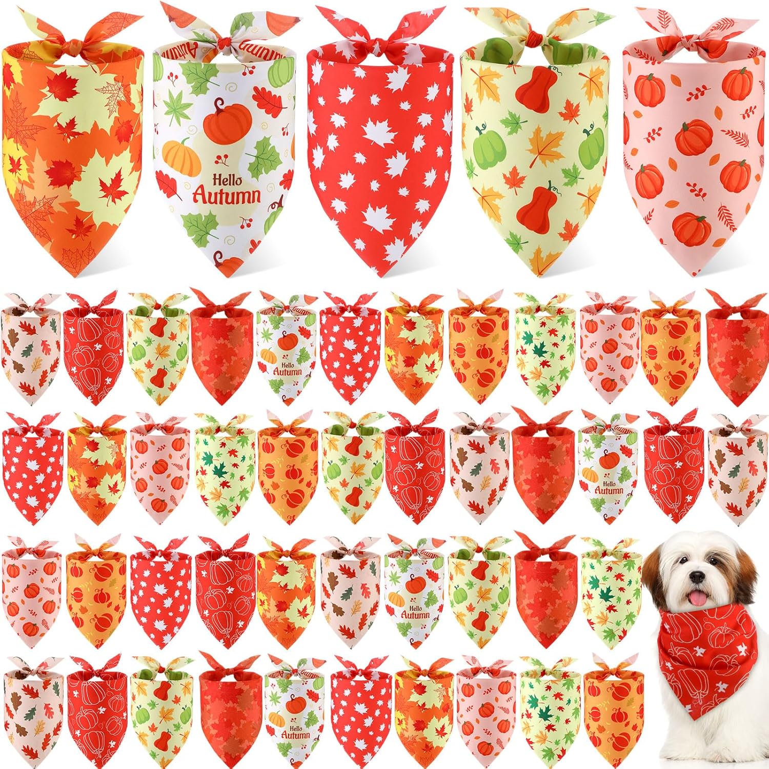 Weewooday 50 Pcs Fall Dog Bandanas Bulk Pumpkin Maple Leaves Thanksgiving Autumn Bandanas for Bibs Adjustable Scarf for Small Medium Large Pet Cat Costume(Leaves Pattern, 19.7 x 13.8 x 13.8 Inch)