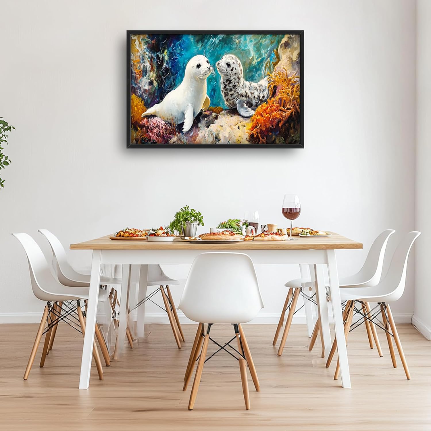 Extra Large Seal Framed Wall Art for Living Room,Oversized Underwater Animal Pictures Wall Decor,Ocean Coral Reef Canvas Print Painting Modern Artwork Bedroom Office Bathroom 36L" x 24W"