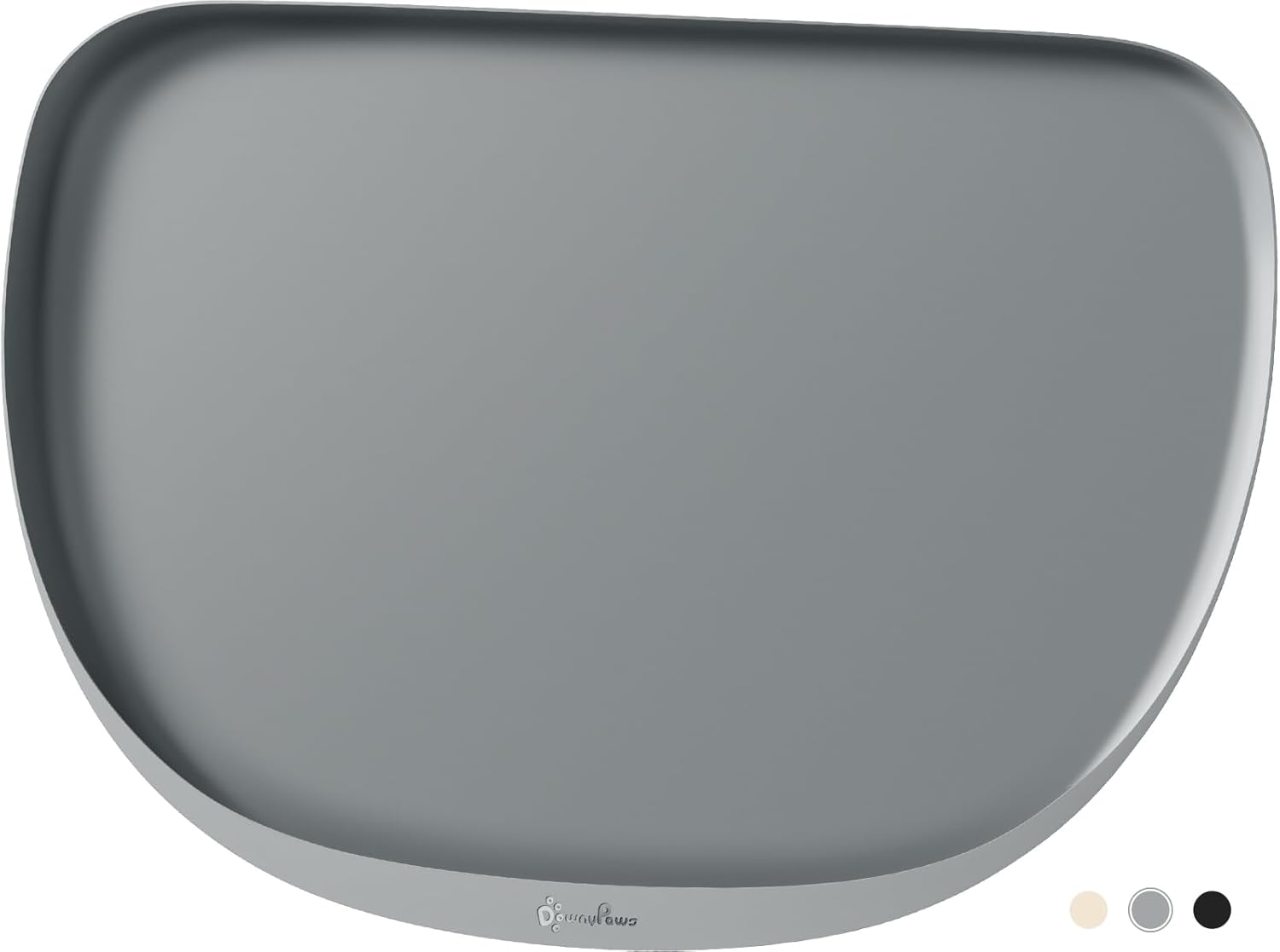 DownyPaws Dog Food Mats for Floors Waterproof, BPA Free Silcone Dog Bowl Mat, Non-Slip Pet Feeding Mat with High Raised Edge, Cat Placemat for Messy Drinkers, 18"×12.5", Light Gray
