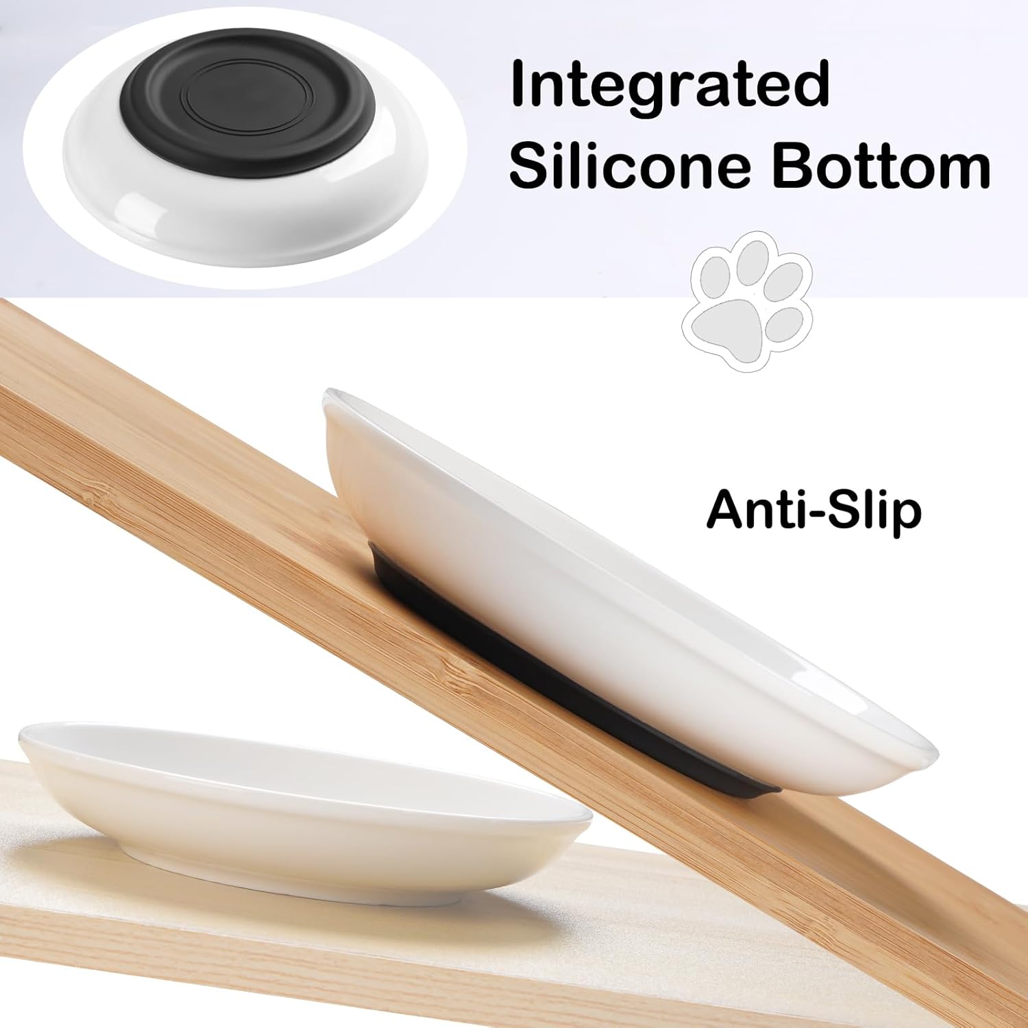 - 【No Slide, No Clank Noise】: To prevent slidding, we designed a integrated silicone base, ensures that the food bowl will not tip over or move easily when your kitten is eating. Besides, the silicone base can protect your floors, and reduces the noise from clanking.