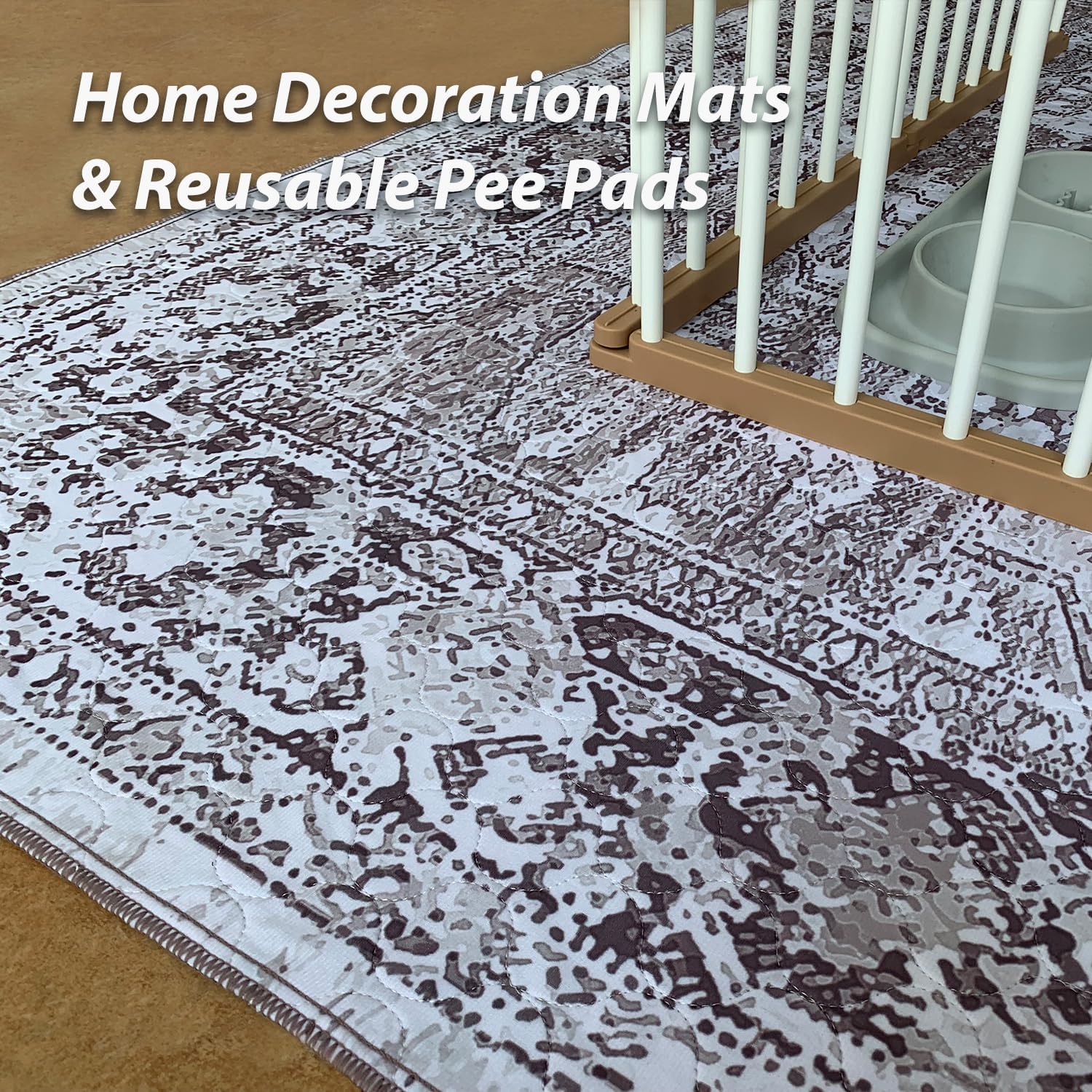 nunubaby 2PACK Washable Pee Pads for Dogs, Stylish, Non-Slip and Leak-Proof Pee Pads. Reusable Potty Pads for Dogs for Crates and Floors.(Brown/Geo, 72" x72")