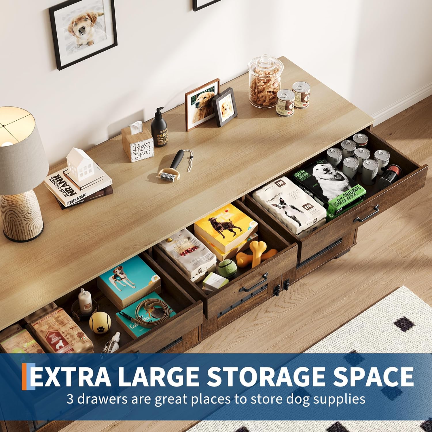 • Stylish and Versatile Design: GarveeLife dog crate furniture features a classic design that blends in perfectly with any living space. It's more than just a pet crate, it doubles as a stylish TV stand or storage cabinet, adding practicality and elegance to your home