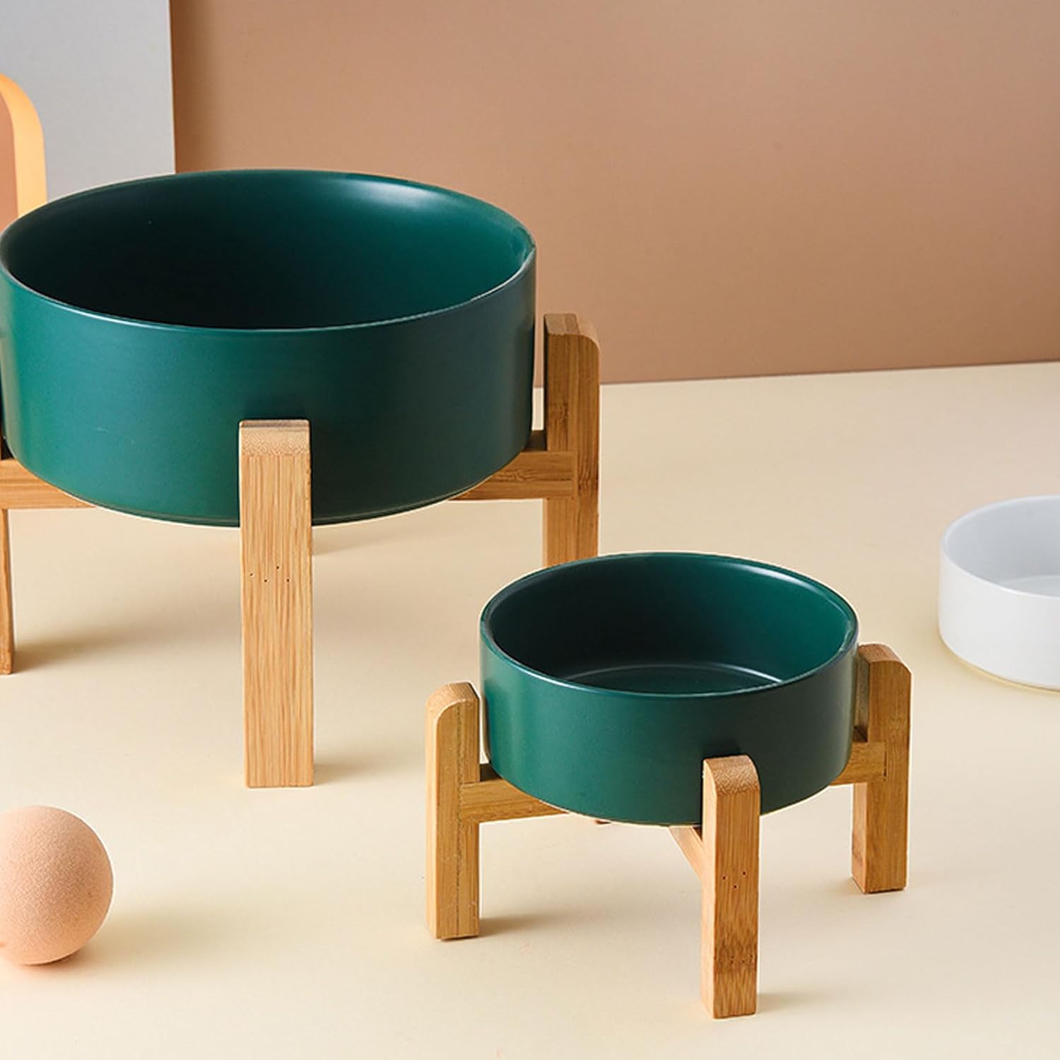 - NON SLIP WOOD STAND -You can get two different heights by flipping the bamboo stand,the elevated ceramic large size pet bowls are perfect for small and medium dogs from different stages of childhood to adulthood, The wood stand on the bowls stopping ceramic dog bowl from sliding around, Keeps pet food and water in the bowls.