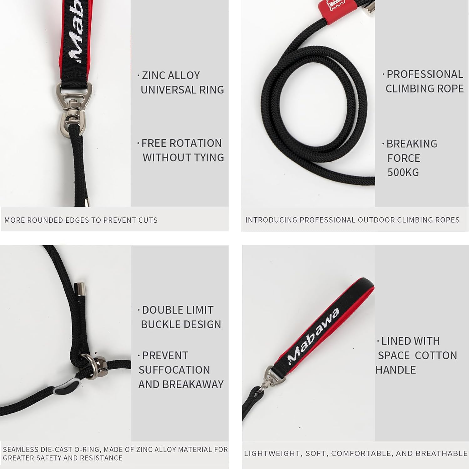 - 【Double Limit Design】: Heavy duty rope dog leash has 2 metal stoppers, which are anti-suffocation and anti-escape, and can easily stop the dog from pulling and will not cause harm to the dog. No-pull training, correcting bad behavior and controlling it in a short period of time, this chew proof leashes for dogs is effective for most dogs.