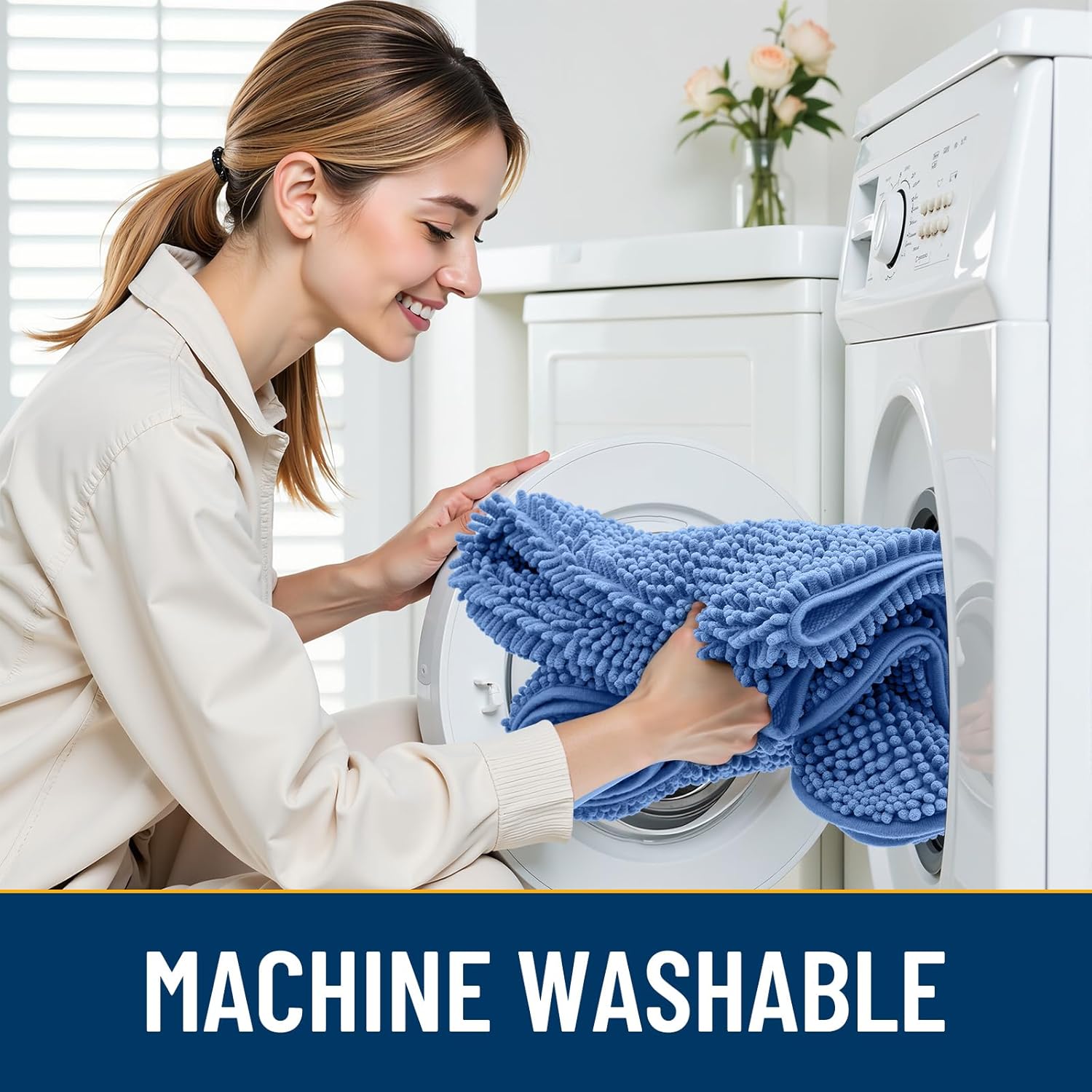Smiry Dog Door Mat for Muddy Paws 36x24, Absorbs Moisture and Dirt Doormat, Non-Slip Washable Quick Dry Chenille Front Door Mat Indoor Entrance, Entryway Carpet for Inside Floor, Cornflower Blue