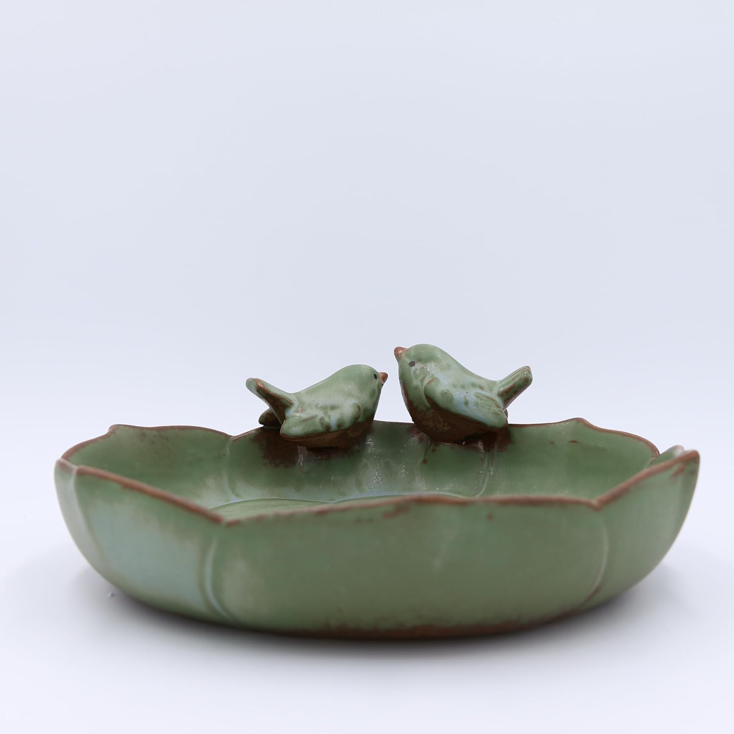 - BIRD-FRIENDLYBird-Friendl & STYLISH DESIGN :The ceramic ground bird feeder is rich green hue mimics foliage, attracting various birds. The basin offers easy water access with smooth edges for safety. Its glossy finish catches sunlight, adding sparkle and doubling as garden decor.