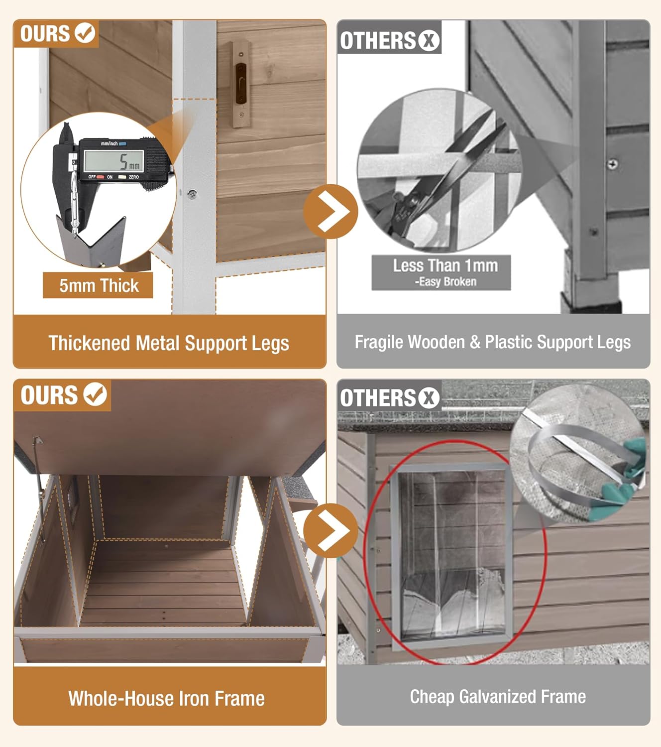 • π–π‡πŽπ‹π„-π‡πŽπ”π’π„ πˆπ‘πŽπ π…π‘π€πŒπ„ π…πŽπ‘ π”π‹π“πˆπŒπ€π“π„ πƒπ”π‘π€ππˆπ‹πˆπ“π˜ - Constructed with a robust iron frame reinforcing every wooden plank, this outdoor dog house (ideal for large dog houses outside) resists chewing and wear. The 16mm-wide frame ensures long-lasting use, outperforming flimsy alternatives for your dog kennel