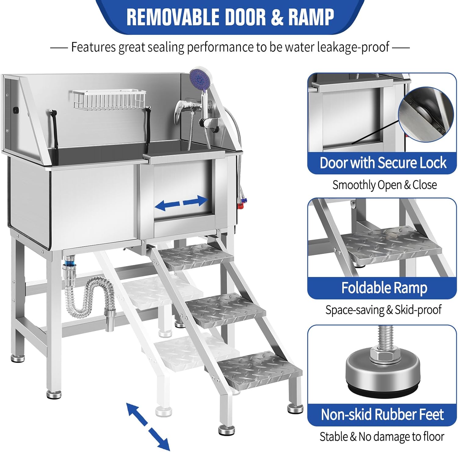 Dog Washing Station 38'' Stainless Steel Pet Grooming Tub for Large Dogs Over-Size Professional Dog Grooming Bathtub Station Wash Shower Sink Pet Grooming Bathtub Station