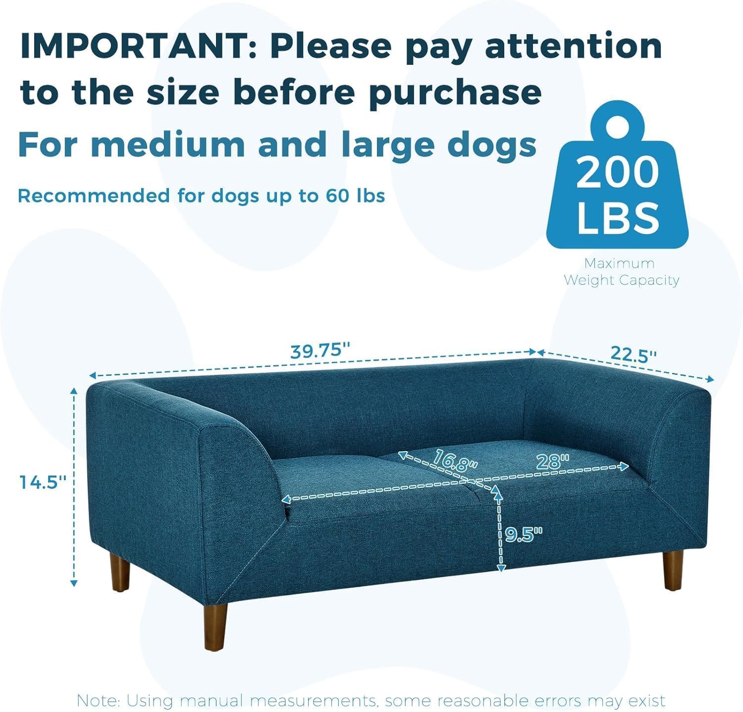 • Warm tips: The size of the dog couch is 39.5" * 22.5" * 14.5". Cushion size: 16.8" D * 28" W. Maximum weight capacity is 200 lbs. Suitable for medium and large dogs, not suitable for extra large dogs. Please pay attention to the size of the product before shopping!!!!