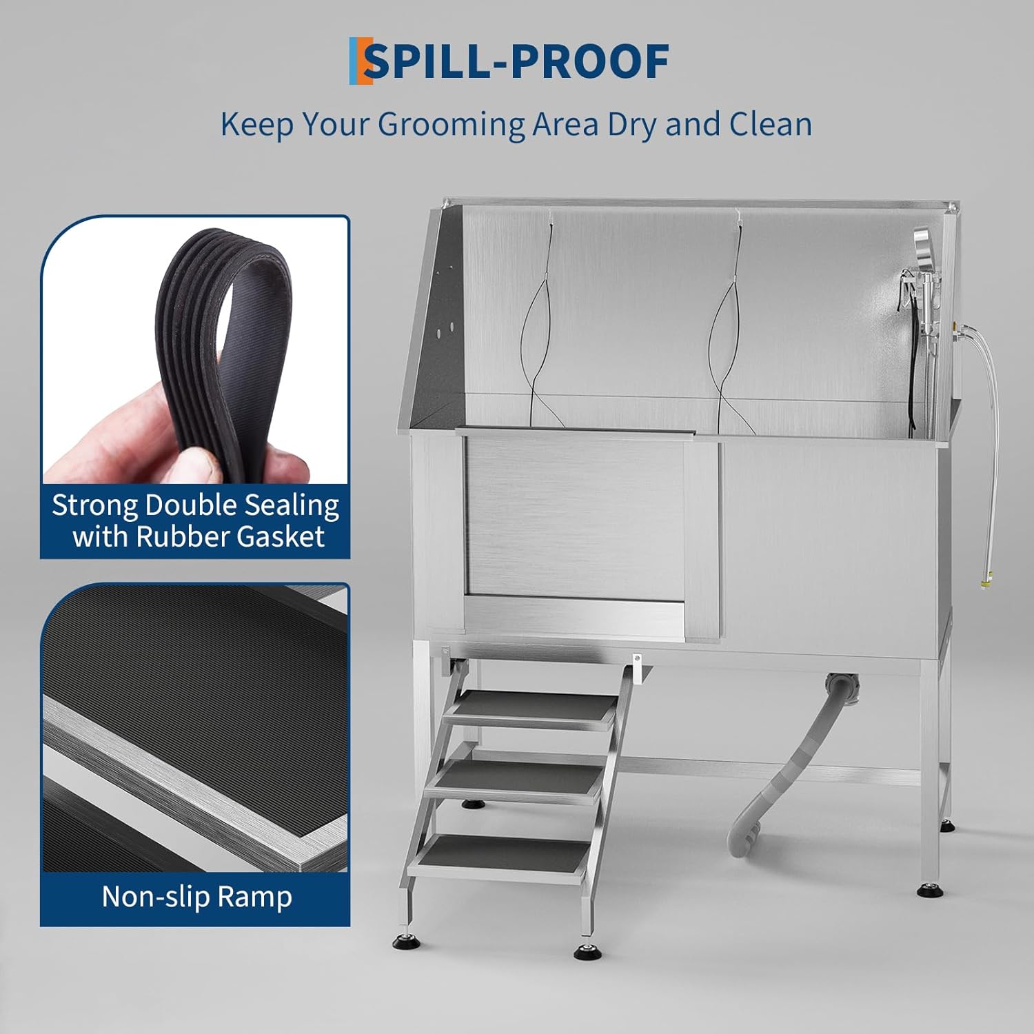 • Efficient Drainage System Removable floor grate prevents water accumulation and simplifies post-bath cleanup. Maintains tidy workspace during grooming sessions.