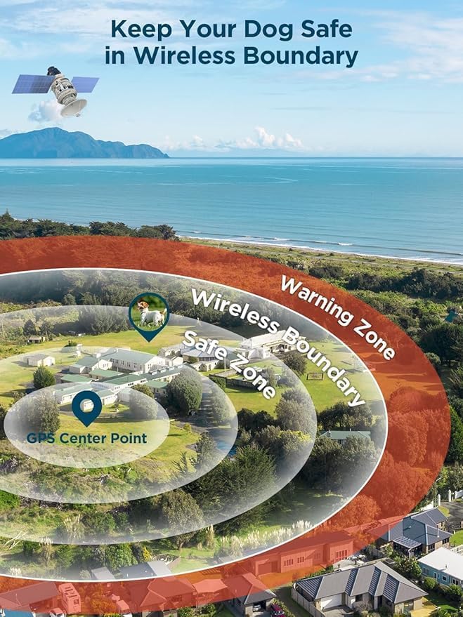 Wireless Dog Fence for 2 Dogs, GPS Wireless Dog Collar with 3 Correction Mode, Pet Containment System with AI Smart Signal, Electric Dog Fence Collar for Outdoor Use(2 Collars)